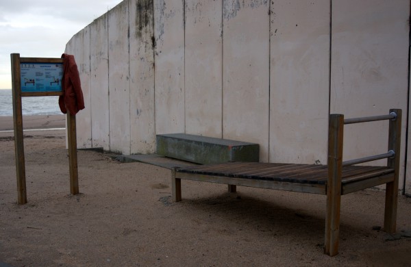 Какая то психоделическая картина. Красный пиджак, пляж, забор....