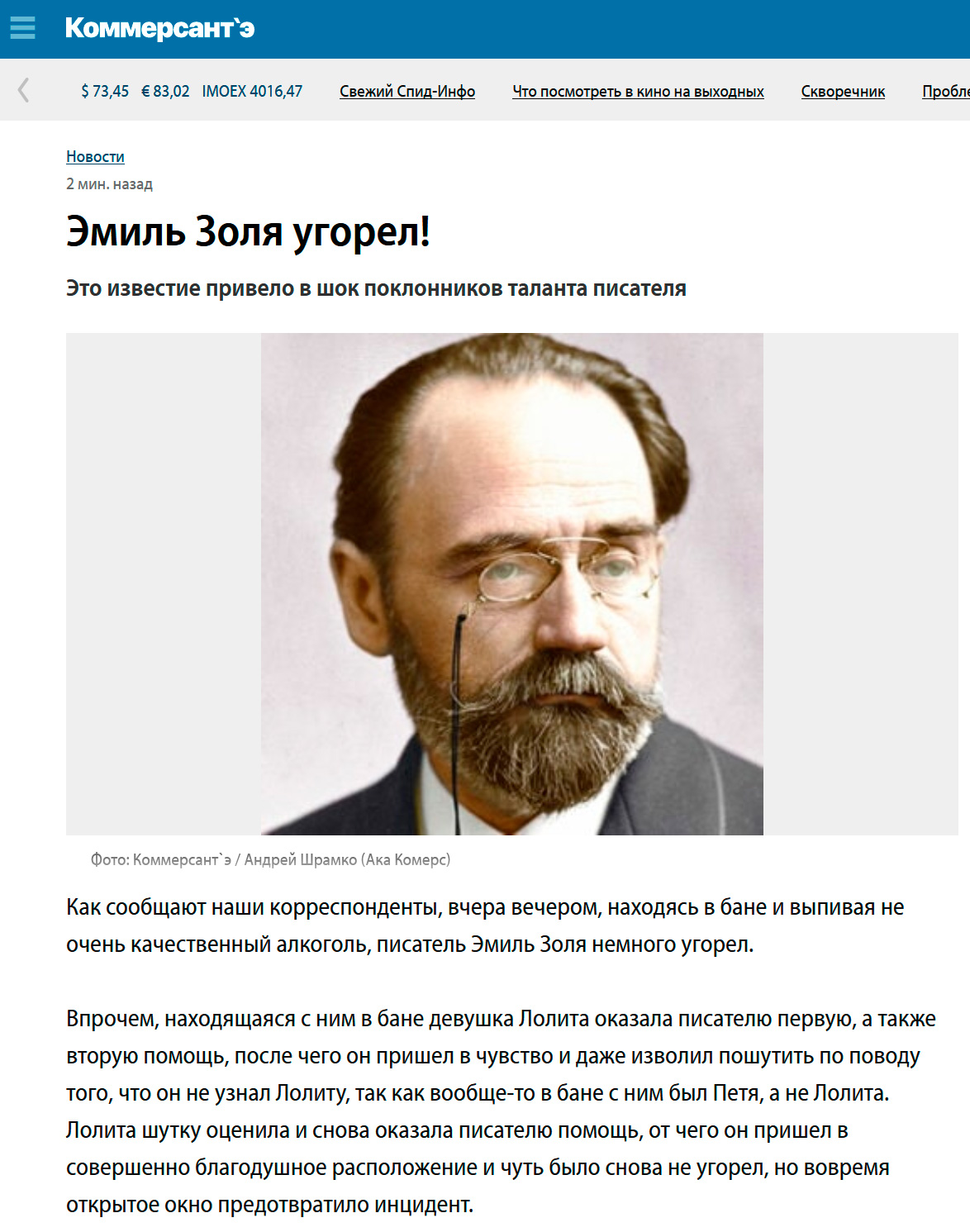 А в чем тут фейкивость? Золя-то действительно угорел.