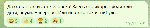 Здесь в своё время подвергали нападкам тех, кто остался в России, не уехал. Как я, например. Их называли соучастниками и предателями дела мира, дружбы, жвачки. И среди их оправданий фигурировали и такие. Т.е. (не)простой человек провёл параллели между просто не уехавшими и этим ярым пропагандоном.