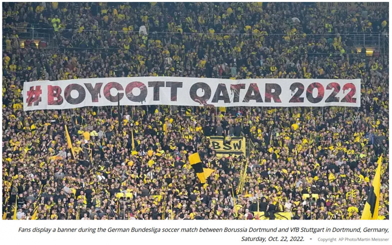 Объявленный болельщиками и увиденный миллионами зрителей по телевизору призыв «Бойкот Катару 2022» стал объединяющим лозунгом для клубов, болельщиков и игроков, которые выступают против чемпионата мира в этом месяце и хотят привлечь внимание к проблемам прав человека и окружающей среды в принимающей стране.