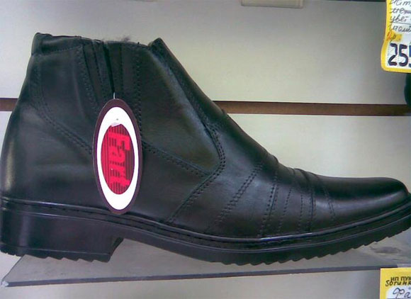 Не понимаю. Если продукция будет пользоваться спросом только в Туле и окрестностях, за каким чертом название бренда писать латиницей? Это что, солидности ради? Ведь по фотграфии видно, что это дешевая и некачественная хрень. Какая там солидность? И покупают такю обувь люди отнюдь не ищущие статусность в сапогах. Ну написали бы "Фарт", "Fart" то зачем?
