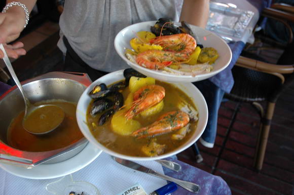 У нас оставались два часа до отъезда, и мы решили отведать знаменитого буйабеса -  это нечто вроде ухи, но намного круче. Нашли в порту аутентичный ресторан, стали изучать меню.