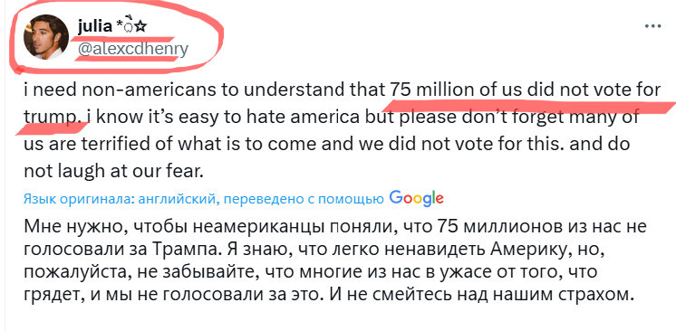 Молодежь нынче туповатая, а про остальные соц. группы вообще молчу. Если глянуть какие штаты голосовали за Трампа (отсталые) а какие за Харрис, то сразу становится все ясно.