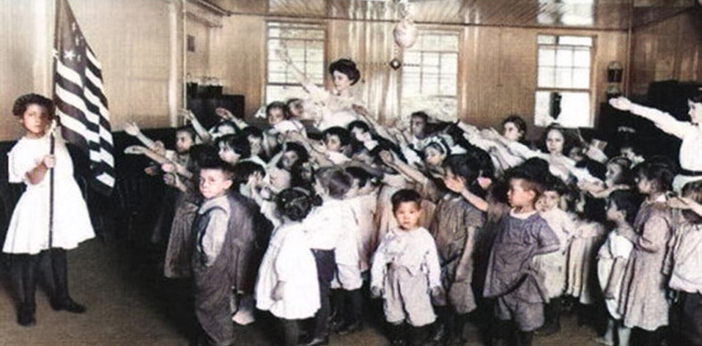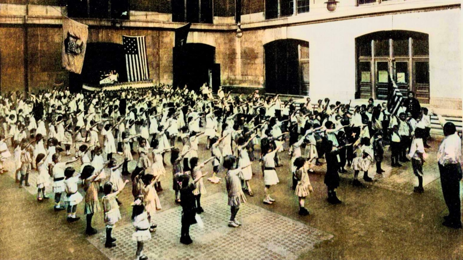 Салют Беллами, существовал с 1892 года. Отдача чести флагу.