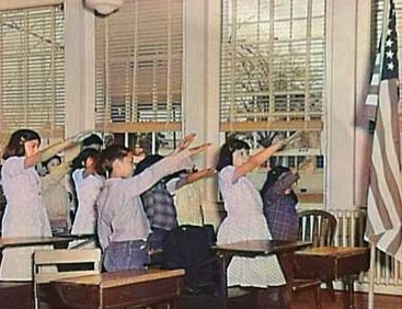 22 декабря 1942 года Конгресс принял поправки к Кодексу о флаге США и клятву флагу стали произносить, положив правую руку ладонью на сердце.»