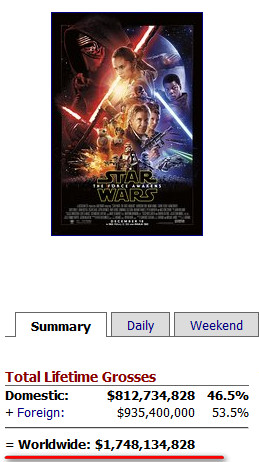 А что касается сборов "ЗВ", то они сравнялись с "Титаником". Да, у "Титаника" чуть больше миллиарда. Но это засчёт миллионов 200-сот, которые фильм дособрал, будучи перевыпущенным в прокат в 3D, спустя много-много лет после первого релиза.