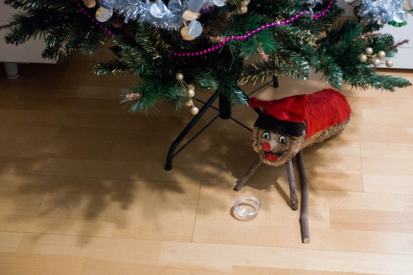 Местные традиции надо соблюдать - поставили под елкой Caga Tio. Ребенок каждый вечер в плошку кладет пару конфет - дядя Каке надо хорошо питаться, чтобы в Рождество, когда его начнут лупить палкой, он этих конфет воспроизвел с большими процентами.