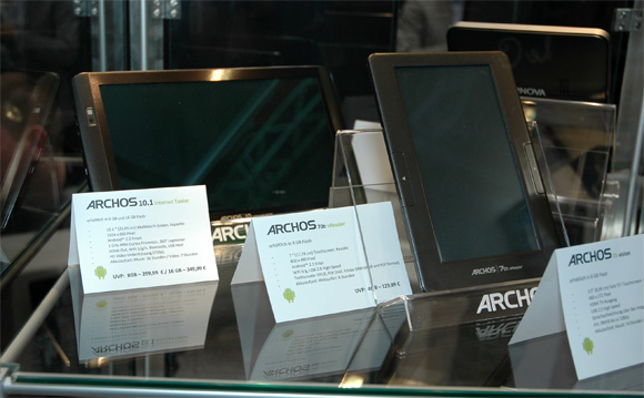 Стенд Archos'а с его планшетами. У меня лежит для теста Archos 10, скоро будет обзор. Но вообще не сильно хвалят. Больше ругают.