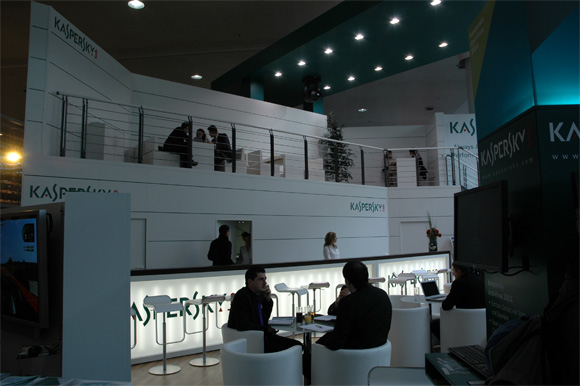 Захожу в следующий павильон, смотрю - какой-то большой стенд, на котором куча софтверных фирм и притулилась "Лаборатория Касперского". Нет, думаю, ну не может "Лаборатория" занимать настолько маленькую территорию на выставке.