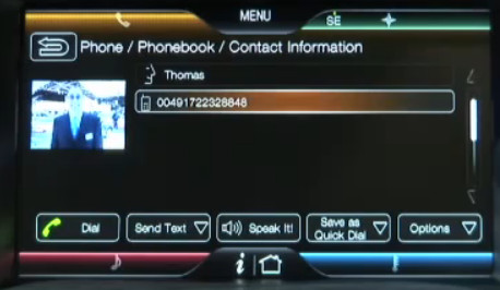 Как только вы садитесь в машину с телефоном, SYNC по BT связывается с аппаратом и после этого входящие звонки идут через громкую связь, выходящие звонки идут через громкую связь (вы можете сказать "Позвонить Василию Пупкину на домашний" - система наберет нужный номер), а поступающие SMS система зачитывает голосом - вот это крайне актуально. Причем она еще и распознает эмотиконы - всякие смайлики и так далее.