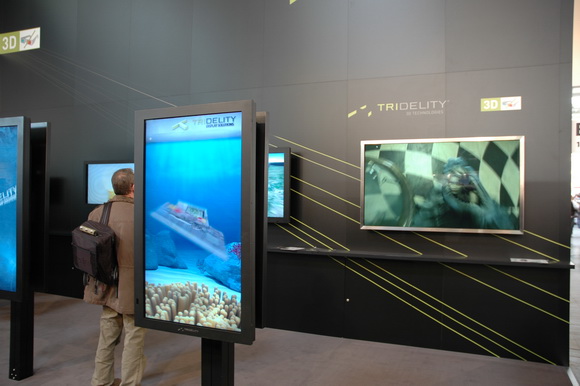 Единственный стенд, на котором были представлены трехмерные телевизоры, не требующие для просмотра специальных очков.