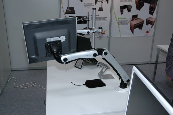 Фирма Ace-Higle Tech Co., Ltd. Делает любопытные и удобные кронштейны для мониторов. Если на столе требуется место, такие использовать - самое то что надо. Плюс монитор можно отодвигать в сторону.