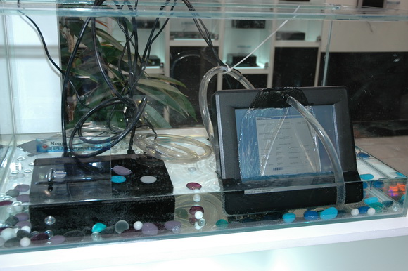 Интересная штука - водонепроницаемый компьютер (системный блок и монитор). На стенде смотрелось эффектно.