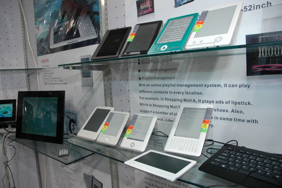 Куча китайских ридеров. С ними тоже было стендов десять. Нередко попадаются четкие закосы под Amazon Kindle. Под Sony почему-то не косят. Видать, боятся японцев.