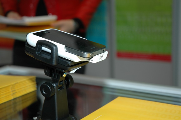 Забавная игрушка - минипроектор для айфона. Световой поток, конечно, минимальный, что-то увидеть можно только в почти полной темноте. Я нечто подобное видел на выставке лет десять назад. Тоже из разряда концептов, которые в продажу толком не идут - это никому не нужно.