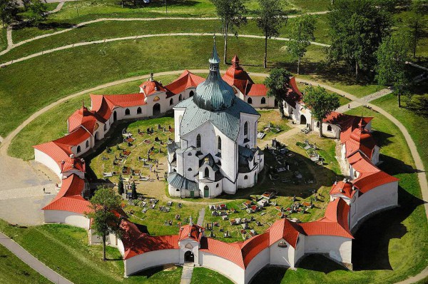 Вид сверху (фото не мое). Церковь была построена в 1720-е годы по проекту Яна Сантини.