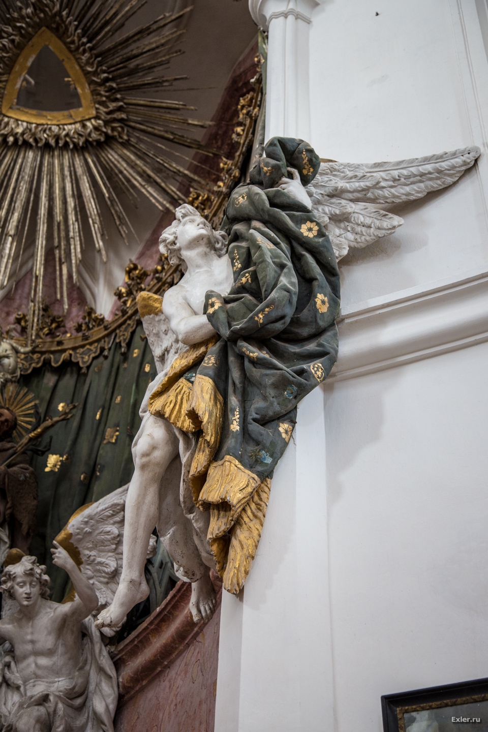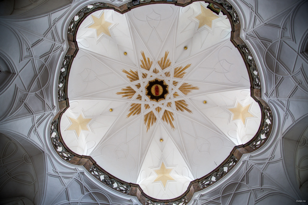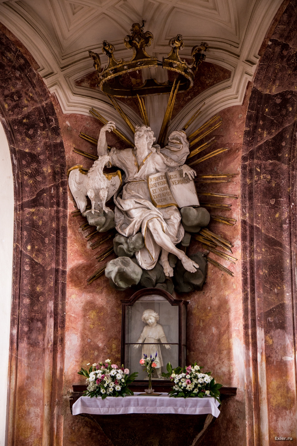 Очень красивый потолок. В центре росписи изображен язык Яна Непомуцкого - в знак того, что он не проговорился об исповеди королевы (по легенде).