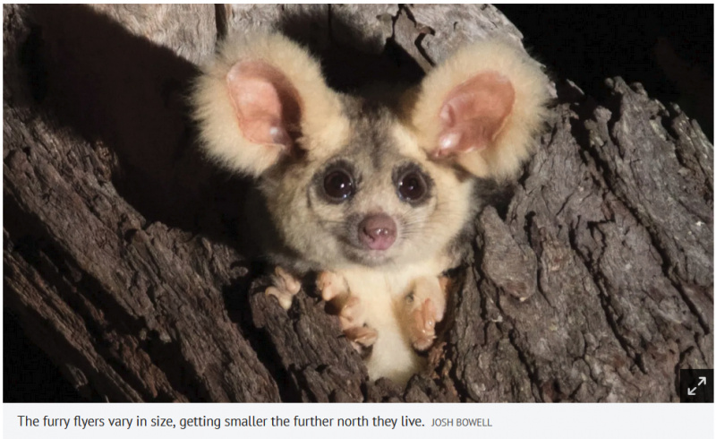 Это большой планер - сумчатое животное размером с поссума (белка-летяга), живущее в лесах восточной Австралии, прячущееся в дуплах: они могут пролетать до 100 метров в поиске своих любимых листьев эвкалипта.