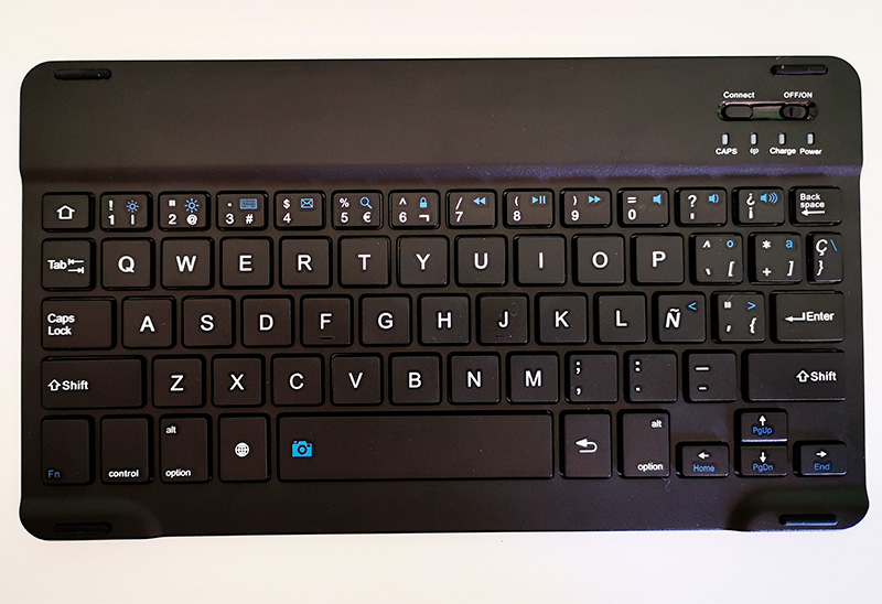 Я уже несколько лет пользуюсь Logitech Tablet Keyboard . Не нарадуюсь. Коннектится со всеми устройствами что у меня есть, все клавиши есть. Чехол, который можно использовать как подставку. У меня переключение языка ctrl+пробел