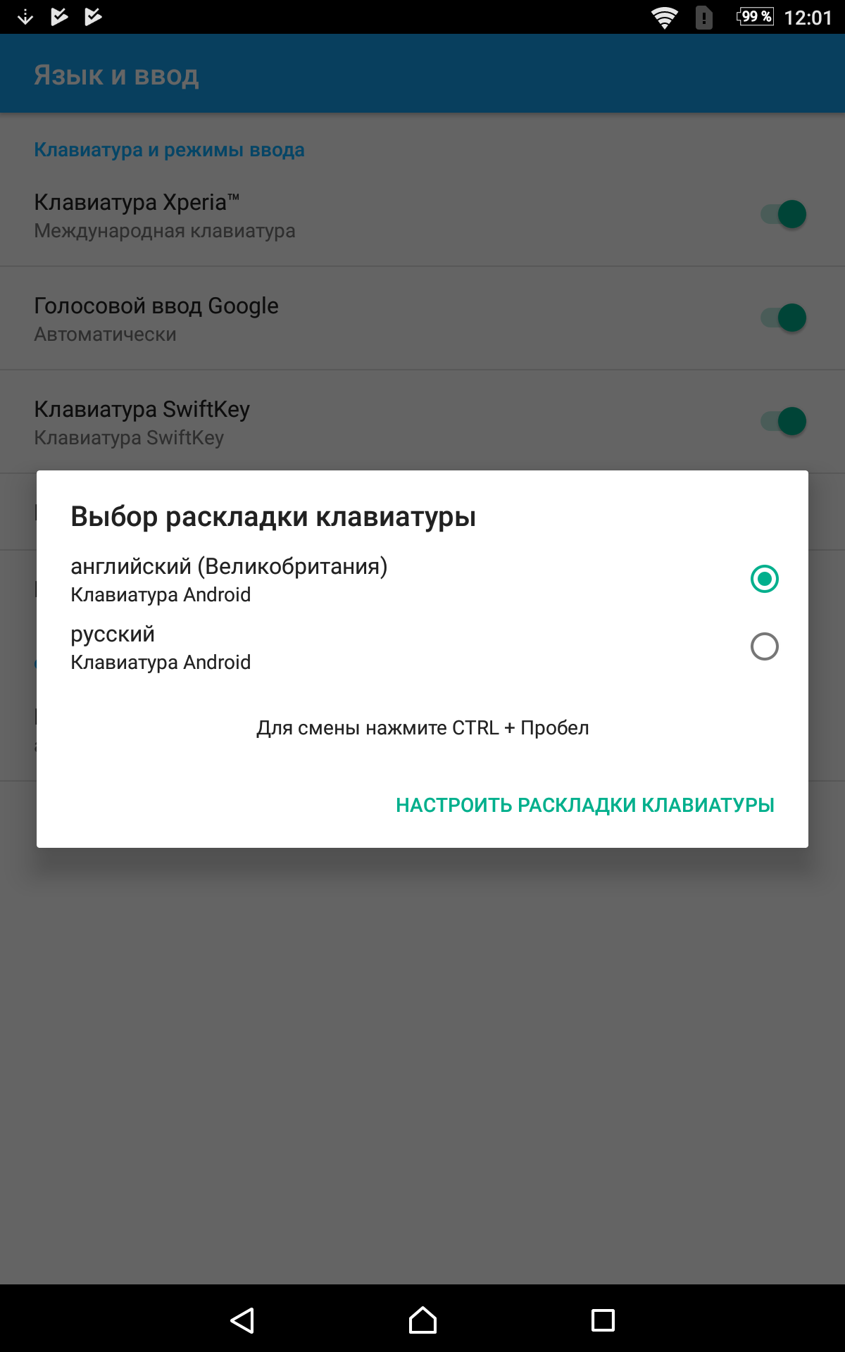 Достал с полки древний планшет Xperia Z3 Tablet Compact на Marshmallow, и там с удивлением обнаружил тот же диалог выбора раскладок (с переключением по Ctrl+Space), что и на Pixel 2 с Pie.