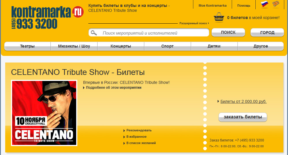 Чуть не накололся. Бросили ссылку на концерт CELENTANO Tribute Show в Москве в ноябре.