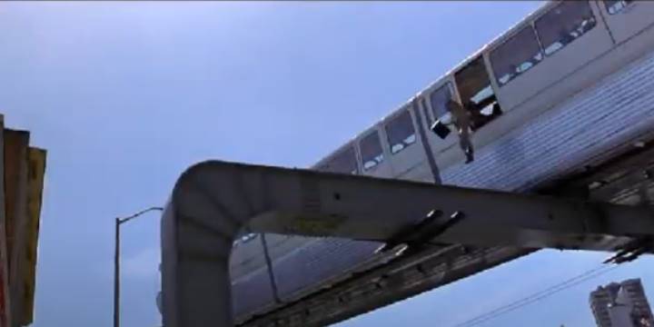 Роберт Рэт (Сильвестр Сталлоне) в панике покидает поезд, пока его не убрали:
