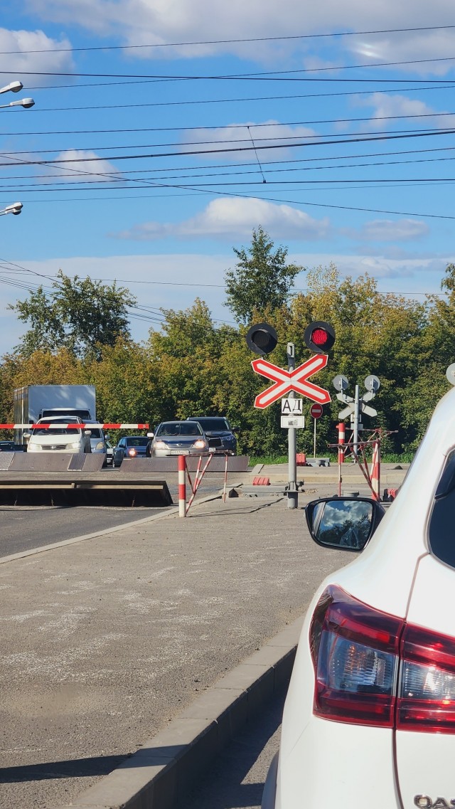 Понаехавшие на закрытом ж/д переезде (шлагбаум опущен, сигнал надрывается) встают на противовес (устройства, блокирующего проезд авто через закрытый переезд)