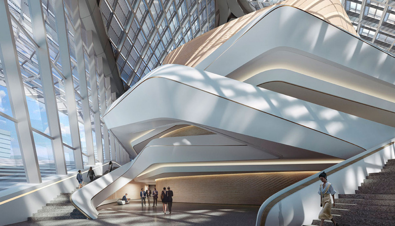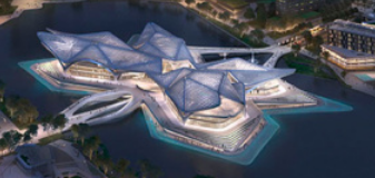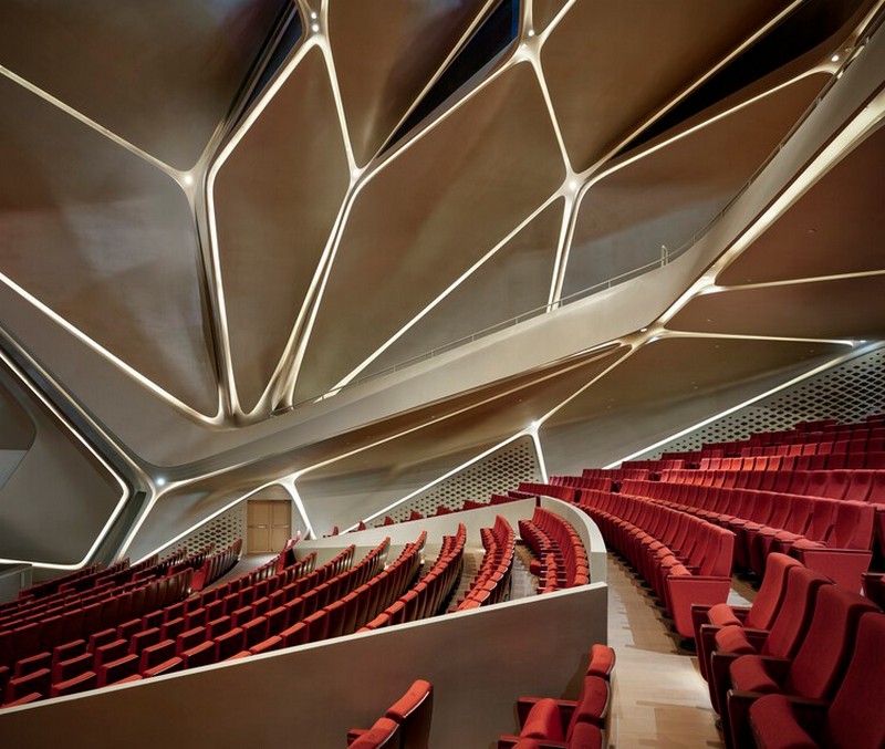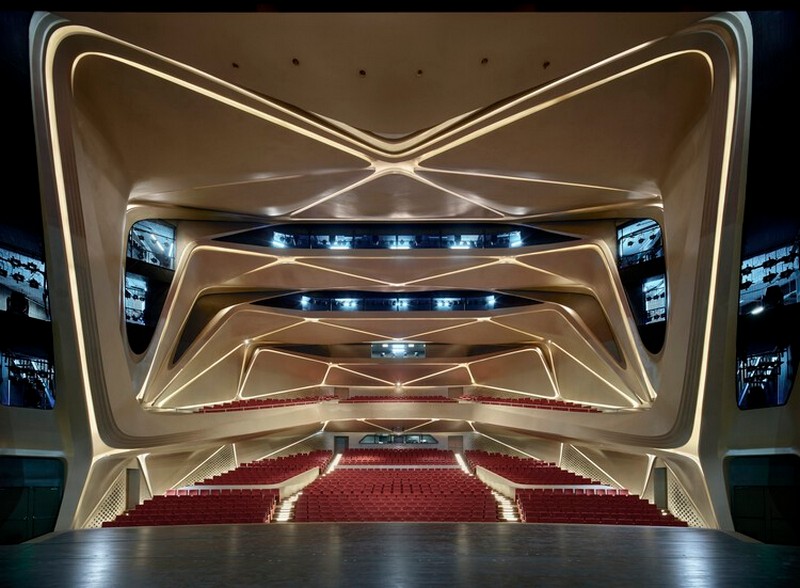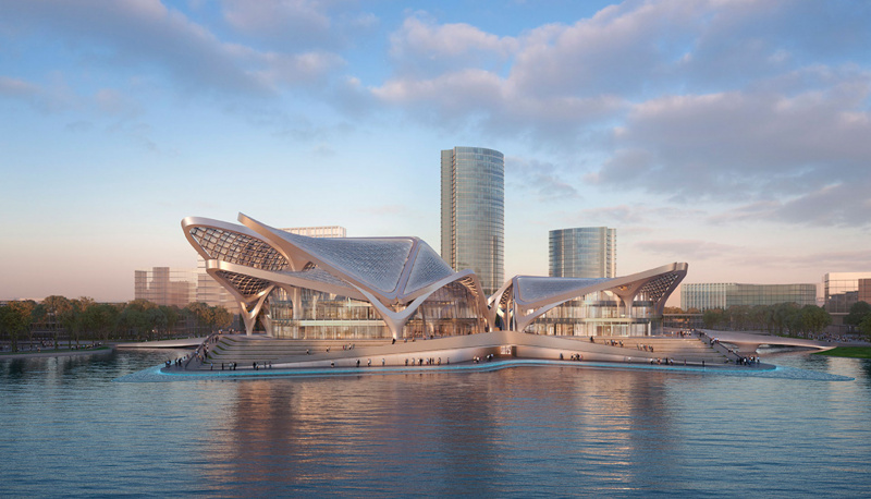Британское архитектурное бюро Zaha Hadid Architects спроектировало и построило арт-центр "Общественный центр искусств Чжухай Цзиньвань" в городе Чжухай на юге Китая. Крыша центра состоит из четырех фрагментов и напоминает очертания крыльев летящей птицы.