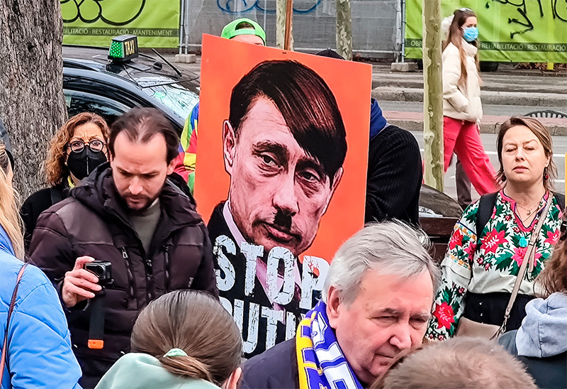 Скажите мне вот что еще, я не понимаю. Гитлер много лет убивал европейцев самыми ужасными способами. Он пролил реки крови, десятки миллионов жертв, триллионы долларов потерь. Путин, конечно, чудовище, в этом нет вопросов. Тем не менее порядок жертв и масштабы разрушений несравнимы даже сейчас. Но ощущения (и у меня самого), что это равно Гитлеру, у всех. Почему так?