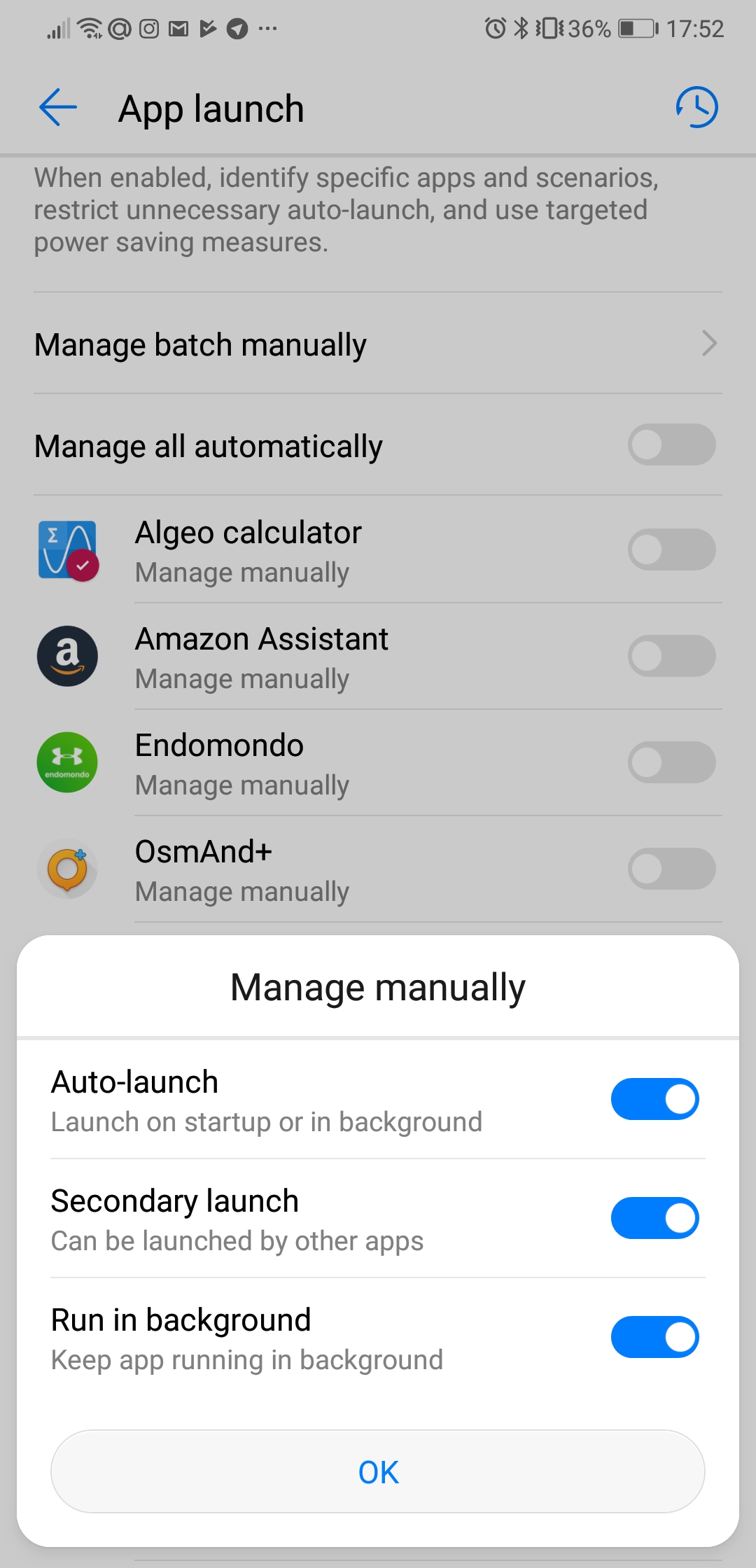 Настройки - Батарея - Запуск приложений