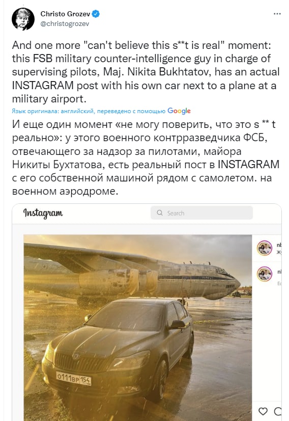 Ждём мем, где Христо Грозев идёт по Красной площади, снимает маску, а там Том Круз. 😄