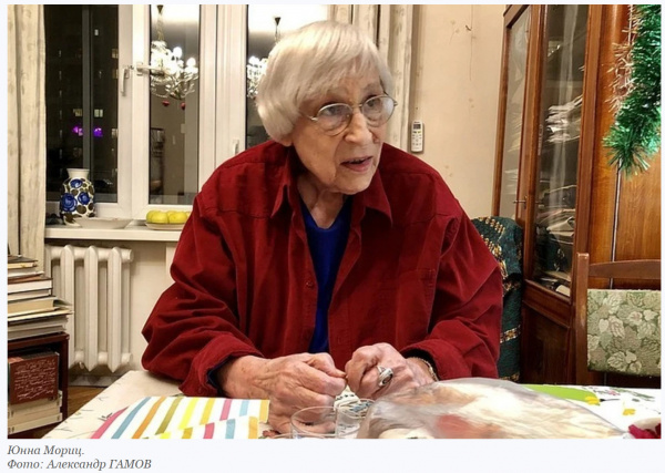 У Мориц, скорее всего, на старости лет случился Стокгольмский синдром. В 30е годы прошлого века МГБ запытало её отца так, что он ослеп, да и саму её КГБ прессовало и запрещали её печатать.