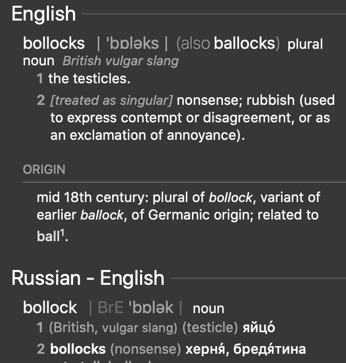 Я специально привел ссылку, где объясняется, что bullocks. Bollocks - это типичная ошибка американцев, а также попавших под влияние США.