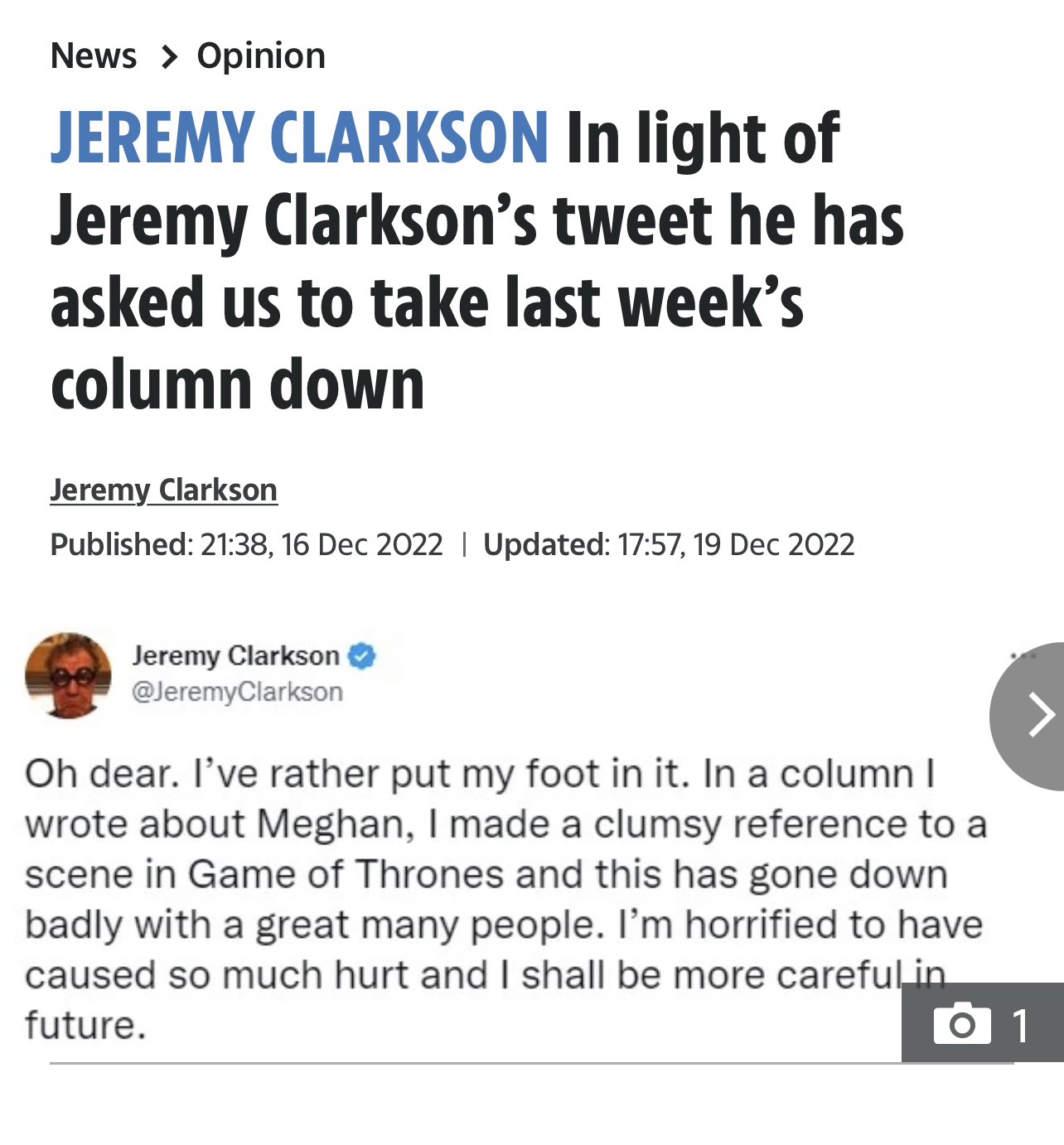 Джереми Кларксон в The Sun в своей колонке пишет о Меган Маркл - "One day, Harold the glove puppet will tell the truth about A Woman Talking B*****ks".