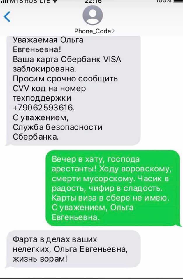 Но дело не в этом. В ленте попалась ссылка на очередную историю развода клиентки "Райффайзена" со стороны мошенников. Развод достаточно стандартный, дама сама наступила на те грабли, которые уже сто раз описаны, и сама злоумышленникам продиктовала коды из SMS, хотя прекрасно известно, что никакие сотрудники банка не могут просить продиктовать коды из SMS.