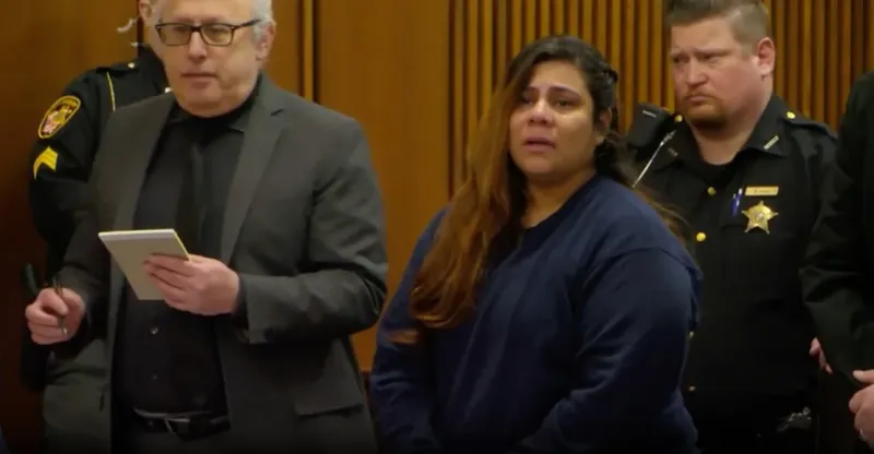 Вот она во время оглашения приговора.