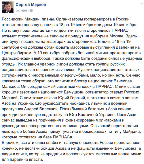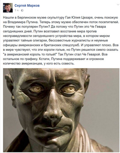 И этимологией своей фамилии Марков как-то не вышел. Так и вспоминается Марк Юний Брут:) Ведь первый небось, если что, заговорит про зловещий заговор американцев, поставивших Путина. Причем будет говорить это искренне! Как всегда...