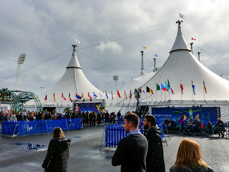 "Cirque du Soleil" выстроили целый цирковой городок в промышленной зоне Барселоны. И там внутри все было отлично продумано: несколько входов, где в очереди на проверку билетов нужно было постоять максимум пять минут, внутри куча киосков с продажей попкорна, бутербродов, напитков и так далее, всякие скамеечки во внутренних двориках, куча туалетов - в общем, нигде не было толкучи и очередей, как часто бывает у всяких других цирков, куда мы также стараемся ходить.