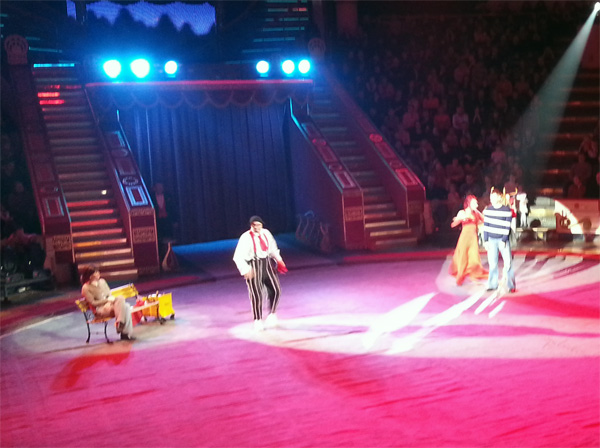 Клоунский дуэт был очень симпатичный. Их представили как "наших американских друзей Алекса и Беллу Шер", однако в программе было написано, что дуэт - супруги Червоткины. Номер с показыванием фокусов был очень смешной, да и с парой из зала они развлеклись совершенно замечательно.