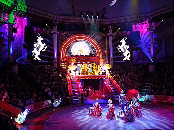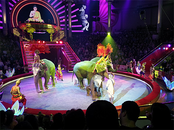 Также очень порадовало, что выступление дрессированных слонов сопровождалось потрясающим по красоте и разнообразию костюмов балетом. Мы даже устали считать, сколько раз за номер они переодевались.