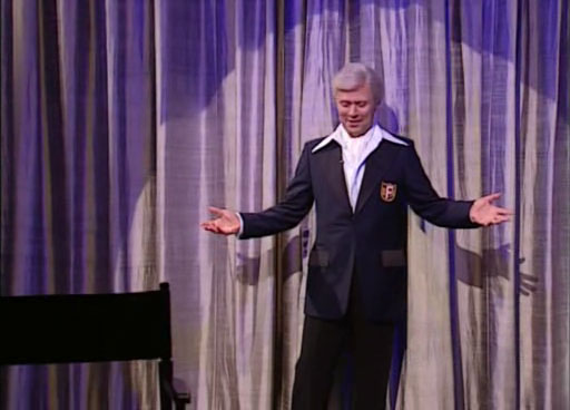 А Воля работает в стиле "общение со зрителем", признанным мастером которого является Билли Кристал. (Кстати, он много лет подряд вел церемонию вручения "Оскар" и считался лучшим ведущим.) Кто хочет посмотреть, как Кристал развлекается со знаменитостями - вот одно из его выступлений, вошедшее в собрание Saturday Night Live - 25th Anniversary.
