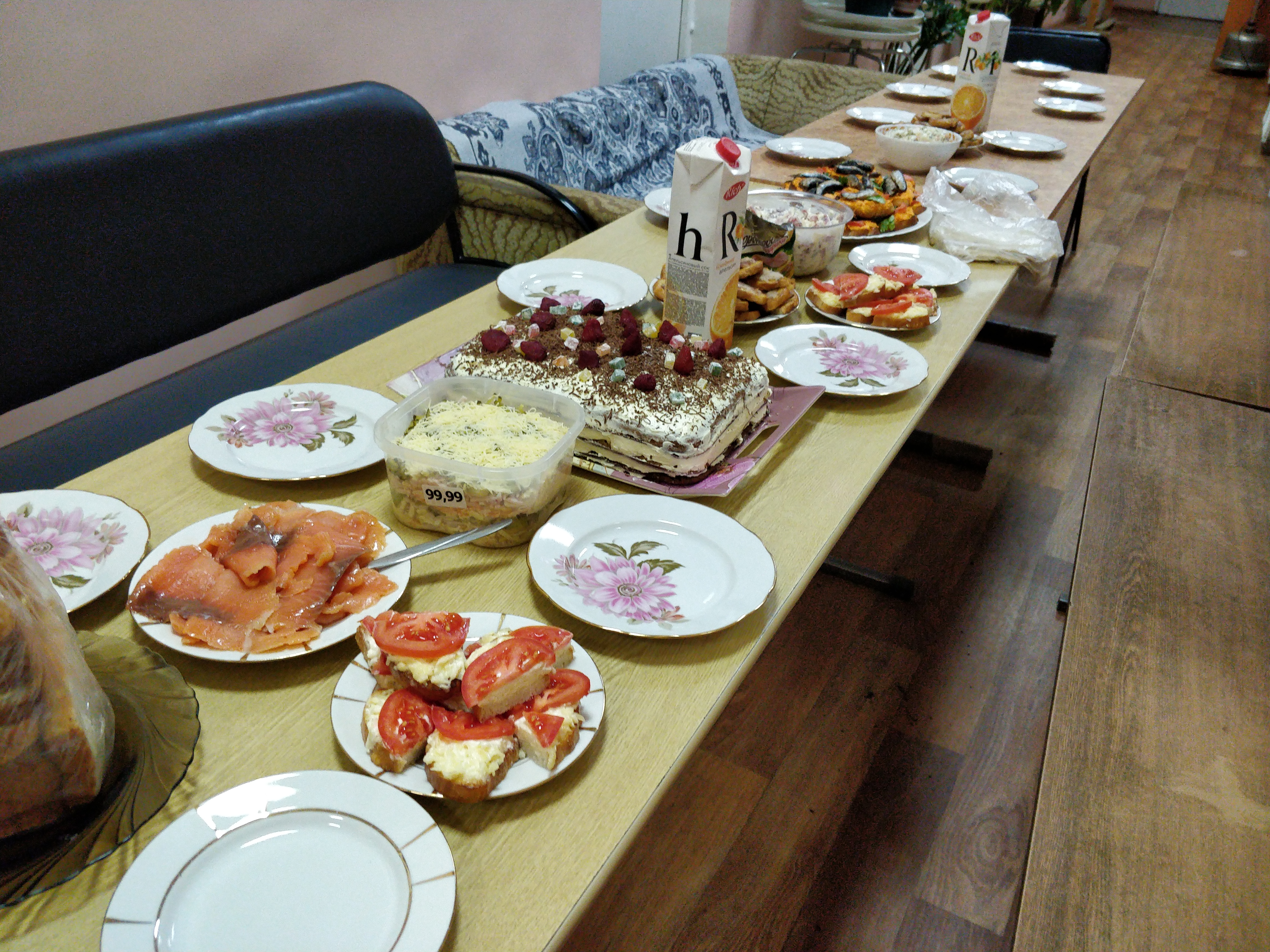 Супруга мастерица на подобное, а я ем мало. Вот она и отрывается пару раз в год с готовкой всяких таких салатов. Часть до доедания не доживет. Скатерть, кстати, знакомая, такая же была когда-то)