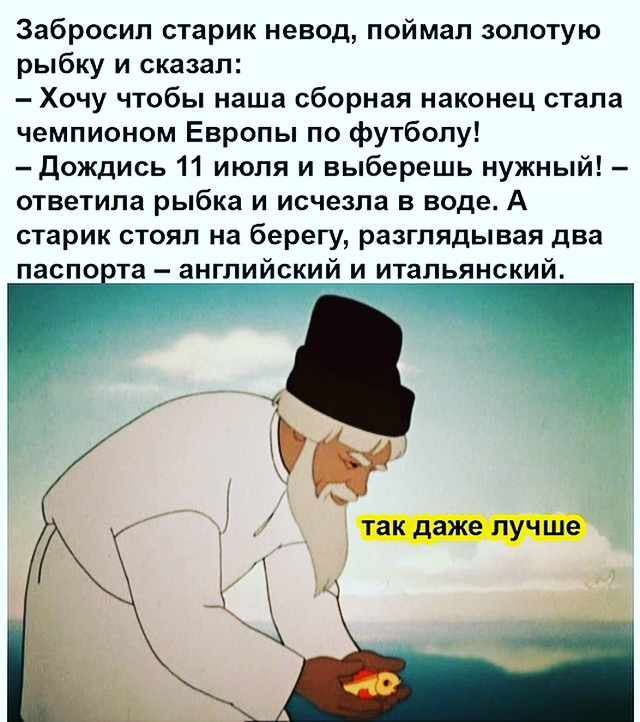 Но 50/50, я бы так сказал. На эмоциях же. Муж возбудится от радости за английскую сборную, жена покорно отдастся, огорченная поражением итальянцев (подумав "ну хоть какая-то радость будет за вечер"). ?