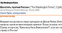 Совершенно изумительная статья "Восстать против России". Некий Цотне Бакурия - бывший депутат парламента Грузии, приглашенный исследователь в Университете им. Джорджа Вашингтона - вещает о времени, о России и о себе. Читать обязательно. Ничем не замутненная прелесть. Правда, я источник пока не обнаружил, но вряд ли уж совсем все переврали в переводе...
