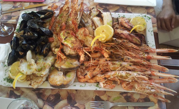 Традиционная скромная тарелочка с морепродуктами в ресторанчике La Cantonada.