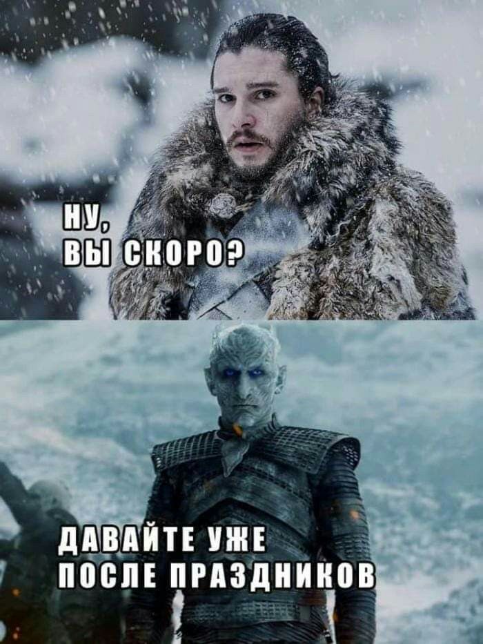 А ребёнок внутри меня прокручивает лица ходоков, когда подходе к Винтерфеллу армию мёртвых встречает шквальный огонь 12.7 мм пулеметов, уханье минометов, и танки, давящие гусеницами на полном ходу армию короля ночи. Подлетающего дохлого дракона пронизывают очереди 14.5 бронебойно-зпжигательных. Король ночи смотрит на все это и тихо сходит с ума. Простите.