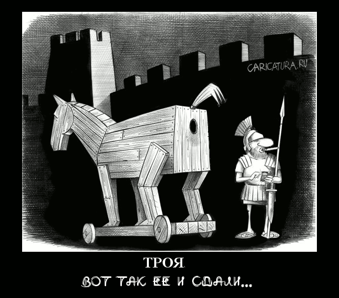 Да-да, точно-точно. Насколько я помню, Шлиман раскопал эту "Трою" (доподлинно неизвестно, существовал ли вообще такой город: вся информация о нем, троянской войне и троянском коне почерпнута из "Одиссея" и "Илиады", приписываемых Гомеру, то есть это просто перепевка каких-то старых сказок и легенд) в XIX веке. И он, конечно, не обратил внимание на "десятки еловых досок и балок", которые были собраны в странной форме, напоминающей большую креветку.