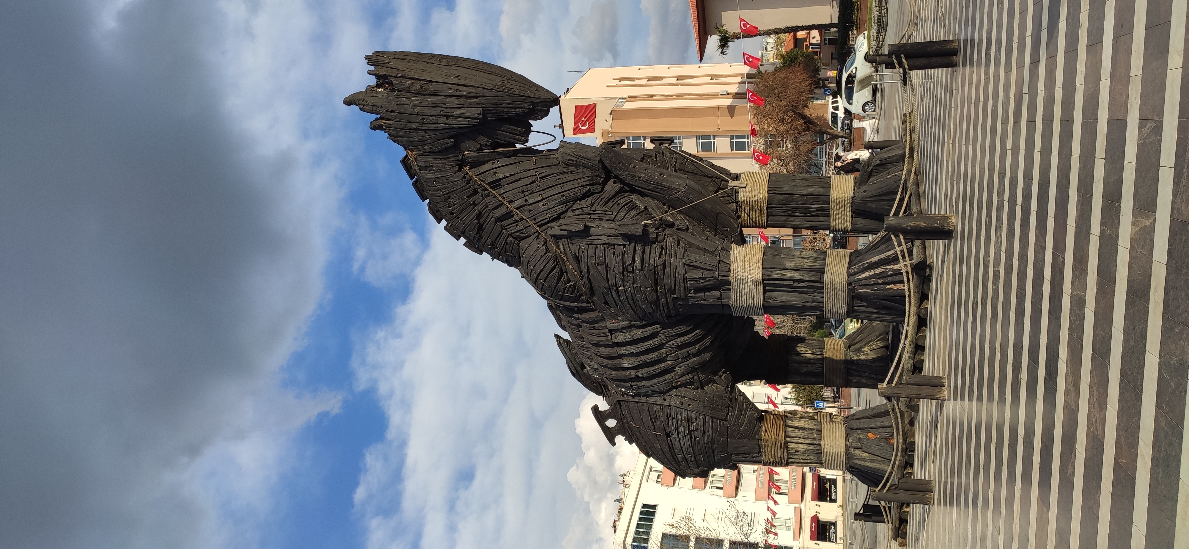 В ходе раскопок были обнаружены десятки еловых досок и балок длиной до 15 метров (49 футов). Остатки были собраны в странной форме, что заставило экспертов заподозрить, что они принадлежат троянскому коню. Деревянное строение находилось внутри стен древнего города Трои.