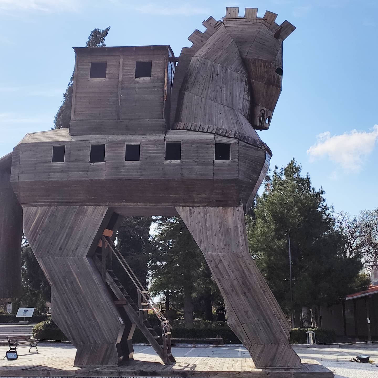 За последние несколько дней по Facebook начали попадаться "сенсационные" заметки с громкими заголовками из серии "В Турции археологи обнаружили Троянского коня". А чего не череп коня Вещего Олега, тут же спросил я? Причем все заметки как одна сопровождались вот этой фоткой, которую я поставил выше - это "Троянский конь", построенный в турецком отеле Риксос, что недалеко от Анталии. Я когда жил в отеле "Зюгма Папиллон", видел, как этого коня строили.