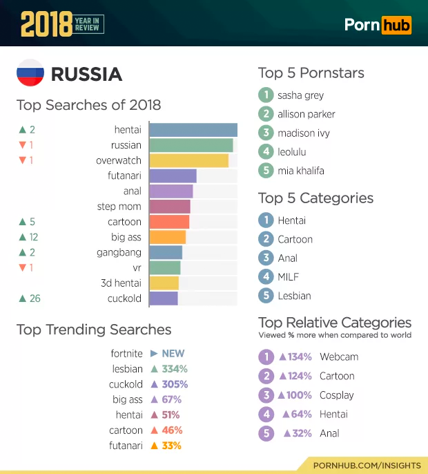 Где-то на просторах интернета видел статистику порнхаб по странам. Россиянам нравятся анал и куколд.